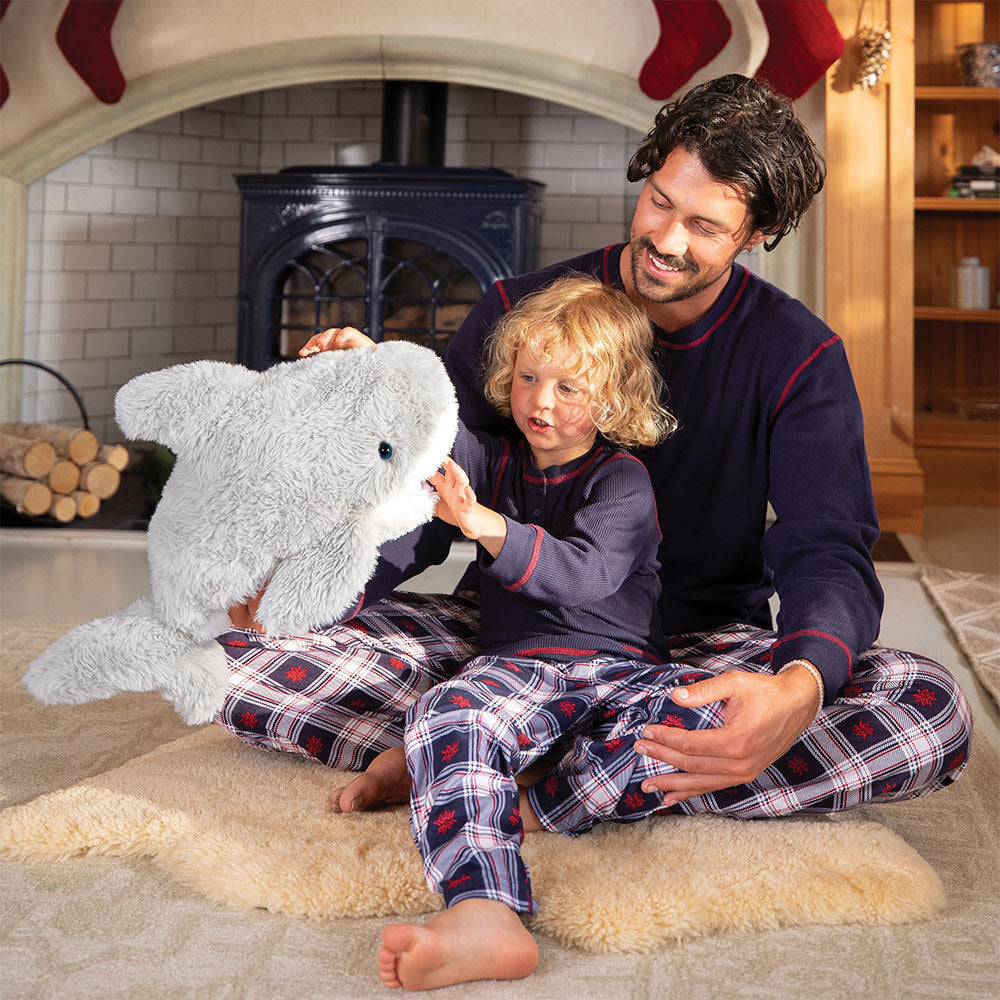 Great adventures await with the Oh So Soft Shark plush. A wild, wonder-filled companion that also has an irresistibly softer side, this huggable stuffed shark is made with premium fur, includes an extra chubby body, boasts fluffy fins, and wears a big open-mouth smile. Detailed to perfection and ready to swim directly into any heart, this shark stuffed animal is Guaranteed for Life and filled with love in Vermont using stuffing made from 100% recycled plastic bottles.